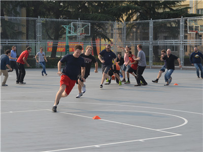 On the occasion of Shanghai High School 150th Anniversary Celebration, the Foreign Affairs office launched a team building exercise for all foreign teachers on the afternoon of Oct. 16th. The purpose of the team building exercise was to help the teachers build a more cooperative, harmonious, and united atmosphere. All teachers worked enthusiastically and cooperatively with their team members to finish six highly competitive events. The stadium was filled with cheers as every team tried the best to compete for first place. Finally, the wining team won the 150thAnniversary Celebration prize presented by the school.