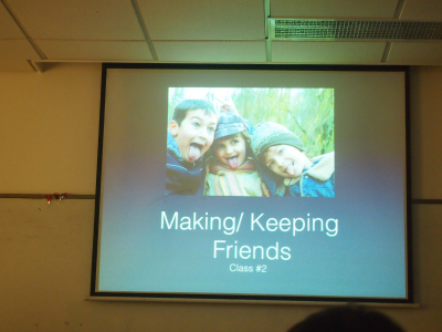 Grade Five students had a health class, learning how to make new friends on September 24th.Some fifth graders are shy or unsure of how to approach a person, so it is necessary to learn several tips and steps to overcome social difficulties. Teachers and students discussed the meaning of peer pressure and the ways to prevent the formation of cliques. At the end of the class, they were asked to make a four to eight square comic about a hypothetical peer pressure situation with two possible outcomes. Students agreed that smiling and respect would be the best ways to make friends.