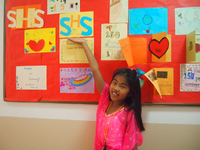 2015 marks the 150th year ofShanghaiHigh School. The fifth graders found that providing the school with a new artistic piece that celebrates the school's history, in addition to highlighting its contemporary vision, is a wonderful way to commemorate an anniversary. To celebrate, they are posting cards from photos of early school years and expressing their hopes and aspirations for the future. Some of them also created the school's mascot. All the cards are exhibited in the hallway. From this event, students will learn more aboutthe buildings, founders, and significance that the school has lent to the community and city.