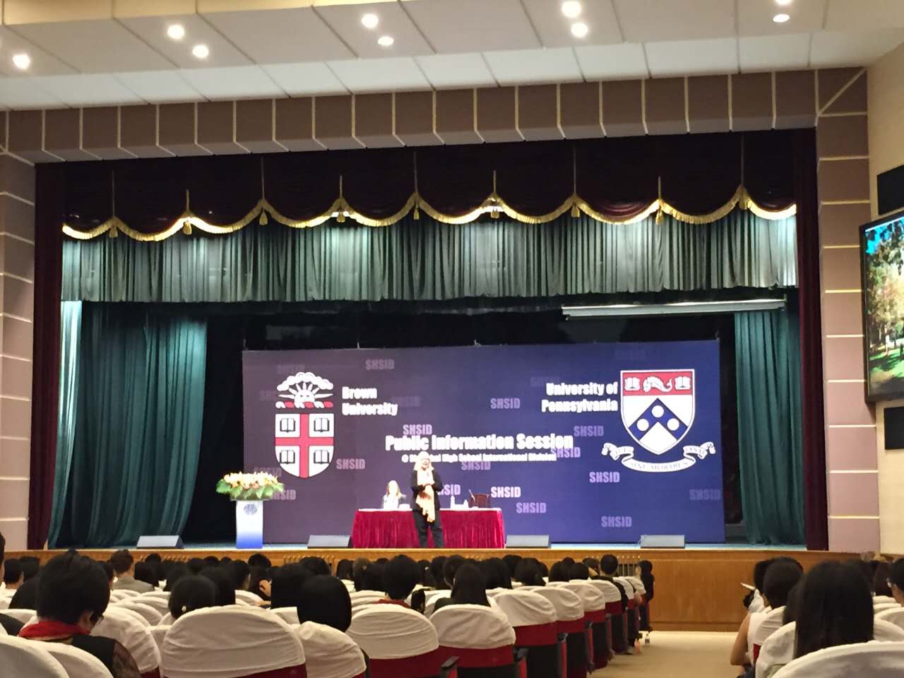On September 17th, 2015, two famous Universities from theU.S.- theUniversityofPennsylvaniaandBrownUniversity- came to our school to give a public information session. Grade 12 students and parents took an active part in this lecture. At the beginning of the lecture, the admissions officers of each school described the enrollment requirements. This was followed by a Q&A session in which the admissions officers, as well as alumni, answered questions from the students. Since September, many universities have come to our school to give lectures to the grade 12 students during lunch time. The new application season has started and everyone hopes to get their dream offer.