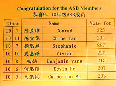 On September 16, 2015, Shanghai High School International Division held the grade 9 and 10 ASB election in the auditorium. Twenty-eight candidates competed fiercely for 13 positions. All of the grade 9 and 10 students voted, and the results came out on the next morning. Congratulations were given to the new ASB members, as they are expected to bring the students into another splendid school year.