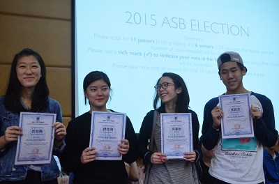 At the beginning of CAS, each candidate gave a two-minute speech in accordance with the ASB arrangement. They presented their best skills and spoke of their determination to contribute to student activities. Their speeches were great as they made full use of their abilities. Some of them rapped their speeches in either English or Chinese, and others simply sang songs to impress the audience.