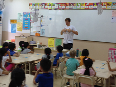 On the afternoon of Sept 9th, some basketball players from the “Stallions” of SHSID visited grade 1 students. All of the first graders welcomed these big brothers very warmly.