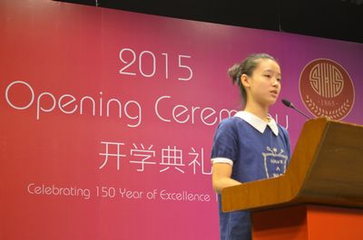 The Opening Ceremony of grades 9 and 10 for Shanghai High School International Division students was held at the Auditorium on the first of September 2015.