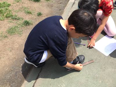 After learning units of length, we did a project about measuring around us. The students left the classroom and measured the footprint, leaves and flag stage. After measuring, the students made pretty posters by the group. They remembered all of the length units through this activity.