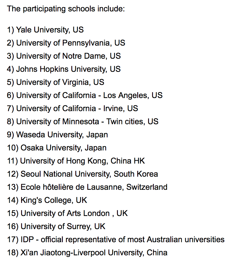 On May 30th, 2015, the Spring College Fair was held in Xianmian Building. This would be the last college fair for the 11thgrade students before they entered the senior year, so it was very important to them. The participating schools included the top universities from US, Asia, Europe and Australia. Students and parents had the chance to ask questions directly to the college representatives and alumni. They learned more about the application process and important items so that they could have a clearer target and become better prepared during the summer vacation. Hope they could get more offers next year.