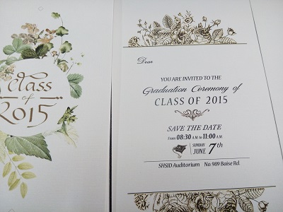 The Graduation Ceremony for the senior high school students will be held on June 7th. The invitations has been sent to the students. The design of the invitation was collected in March. We have received a lot of great designs. The students voted for a week and we chose two of them. The designer improved their work and the final edition is both elegant and graceful. We hope everyone can go.