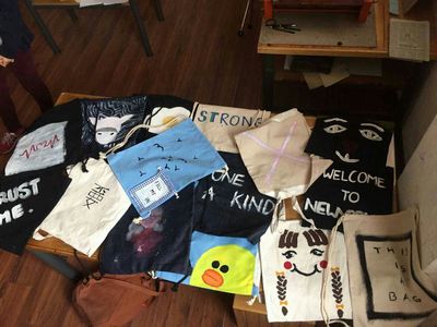 On Friday, the V.A.T. club, which stands for “very awesome T-shirts”, presented and sold hand-drawn bags during lunch break. Before the actual sale, club members promoted their products through posting pictures on wechat. They were overjoyed when a tiny line formed in front of the tables and some students bought more than one bag. Like all other club showcases, a poster with the club name and sign was hung on the wall. All sixteen bags were sold out, and the club donated all 480 RMB to the Nepal earthquake and Syrian refugees through World Vision. The club plans to not only sell bags but T-shirts and phone cases in the future and to raise awareness for events and charity organizations. The club feels extremely thankful and excited to share and transform their creativity and interest into something that can benefit other people and bring them joy.
