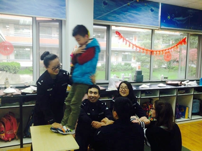 “The Brave Heart” with the Police Academy’s Citizens Police Academy Association (CPA) in Shanghai focuses on safety advocacy. As one of our safety activities, we invited police officers to give the 1st grade students an interactive lesson entitled “The Brave Heart”. After the students acquired some self-defense skills, they defended themselves against the “bad guys” who were performed by the policemen. When the class had finished, the policemen gave the students these following comments: