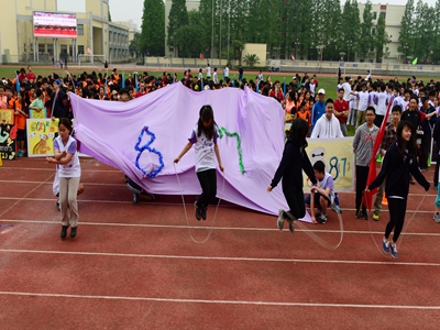 Class one and two were the first eighth grade homerooms to enter, and they performed with great cooperation in basketball. Class three and four combined concerted efforts and presented the world-favorite sport of soccer, and after them was a tense match of tug-of-war between class five and six. Class seven and eight entered shortly with an entertaining jump-rope performance, and class nine and ten had an exciting round of dodgeball. Class eleven completed theirs with the seventh grade class eleven, which was also basketball and dancing. All the performances were entertaining and wonderful, a perfect start to the Sports Meet. We can’t wait for what next year’s event will bring.