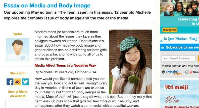 This month, Michelle Yang from 8(1) sent her English essay to the website of the magazine. The essay, titled “Media and Advertising Affects Teens Negatively”, will be put up for about a month before it is taken down in May. The magazine was glad to accept it. According to the staff, they wanted “more opinions from a kid’s point of view nowadays”.