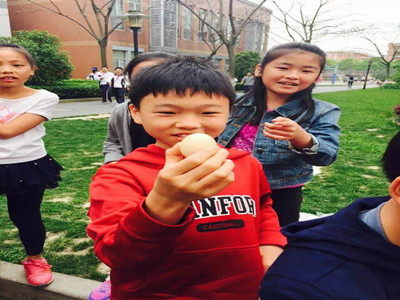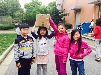 On April 24th ,the 4th grade students welcomed the Egg Drop Competition finally! After the lunch, students rushed to the second floor with all of their materials, which had been prepared beforehand. In the form of groups, students had the Egg Drop Competition. Some students used the parachutes, while others used the hydrogen balloons to prevent the eggs from being broken. Students’ ideas varied from person to person.