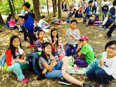 On April 23rd,the 4thgrade students had a field trip. On that sunny day, students went to the Binjiang Forest Park. In the park, students played on the bumper cars, jumping beds and other recreational activities. Students enjoyed the delicious food and shared interesting stories with others under the shadow. Our famous foreign teacher, Mr. S, also had a soccer competition under the sun.