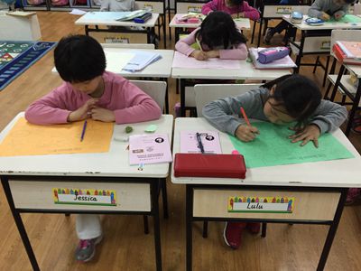 We had a special activity during Week 6’s Personal Growth period. Teachers designed a poster with a lot of shapes. Students chose any shape they liked and wrote a comment to that classmate. All of the students wrote very nice sentences to their classmates. They were very interested in the comments other classmates wrote to them.