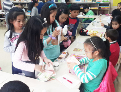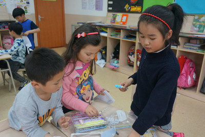 On that day, every 1stgrade class ran a special mini market with fake coins and commodities prepared by the 1stgraders. Every 1stgrader had prepared three commodities to sell in advance and everybody could buy each other’s commodities with the fake coins in the market. Every student worked very hard at picking his favorite things, counting the coins he needed to pay and figuring out the change he should receive.