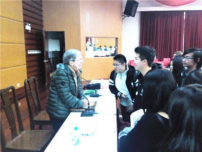 On Thursday, April9, 2015, Ms. Betty Barr, the 82 year old who is the last remaining survivor of the Lunghwa Civilian Assembly Centre still living in Shanghai, came to our campus to speak to students about her life here as an internee from 1943-1945 and answer questions. Before her appearance, she answered questions submitted by the Campus History Club in a video interview which will be used in a guide computer app the club is working on. Then, with the club faculty advisor Sven Serrano, she made her way to the Annex auditorium where nearly 75 students were waiting to hear her talk.