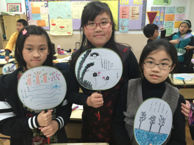 In the afternoon’s Chinese class, students also learned to draw round silk fans under their teachers’ instruction.
