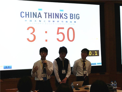 China Thinks Big (CTB) is a nation-wide research competition held at Harvard Shanghai Center. It attracts hundreds of teams from different high schools in China every year. Each team chooses a topic from 9 fields: technology, education, health & safety, sustainability, arts & culture, humanities, ethical reasoning, social sciences, globalization & community. By answering the essay questions and turning response paper online, students “think big”, and through writing project proposal, doing research, students “do small”. During the semi-final and final, students should conduct debate, pitch (both in English and Chinese) and present their results and models in “innovation fair”, meanwhile answering challenge questions from judges and other teams.
