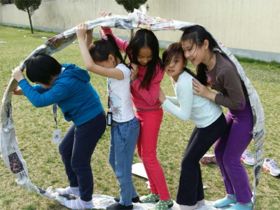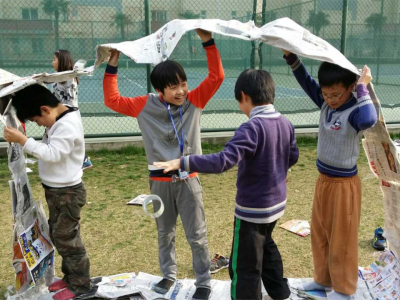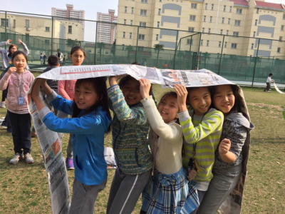 On March 24th, students had an outdoor activity called ‘newspaper dash” in their P&B class. They worked in groups of five and connected the newspapers with tapes to make a huge ring. And then they got inside the paper ring and rolled it while walking. Not all the groups could succeed, but they really enjoyed this activity and learned how to work in teams. And the playground was also cleaned up after the activity, which showed how responsible our 4th graders were!