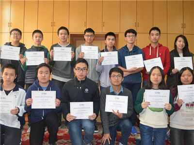 Fifteen students achieved a high score in the 2015 American Mathematics Competitions (AMC10/12), and obtained the qualification to take the American Invitational Mathematics Exam (AIME). They received the Certificates of Distinction from High School Principal Ma. Wu, Bo is the winner of AMC10, and Luo, Raymond R is the winner of AMC 12, who is also awarded with the honor roll of distinction. Congratulations to them.