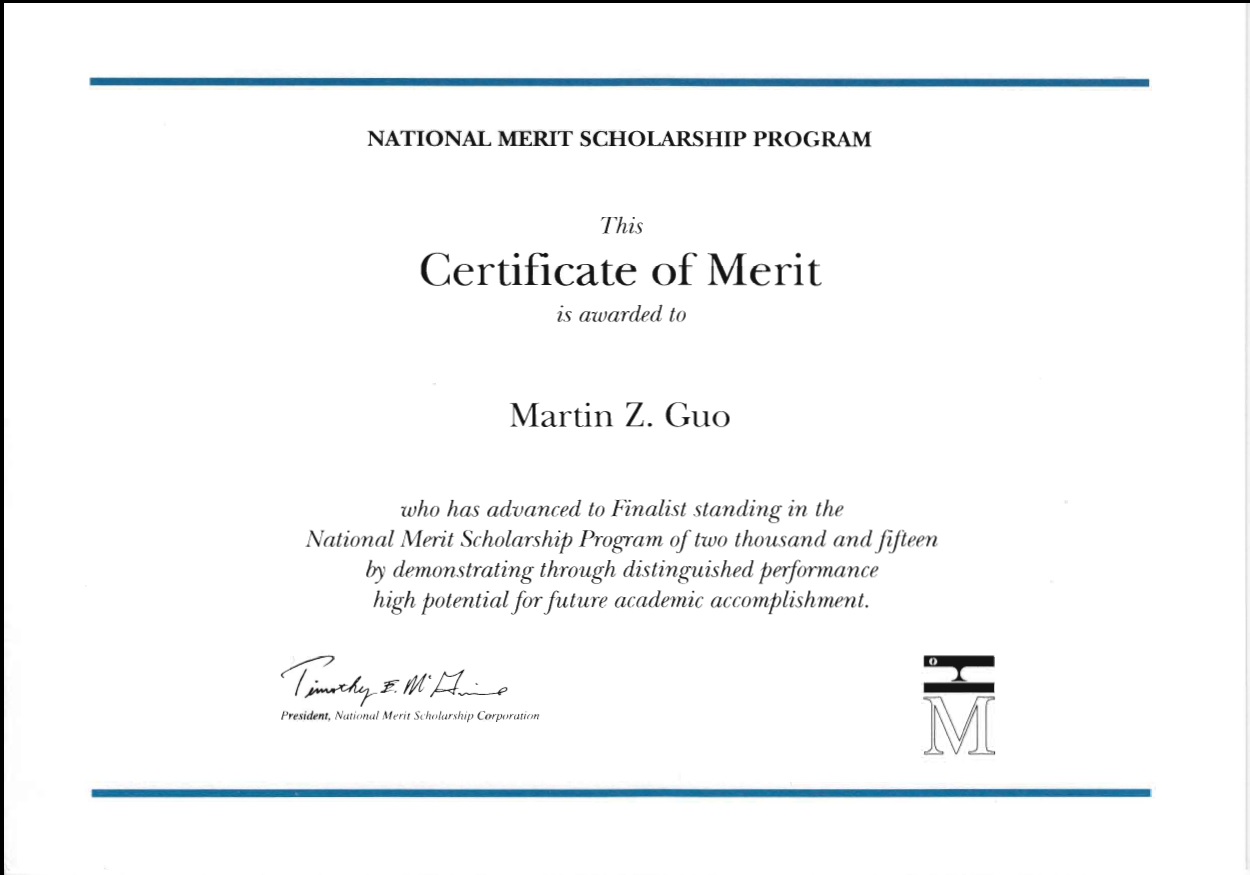 12(1) Martin Guo becomes a Finalist for the National Merit® Scholarship. Congratulations!