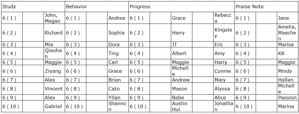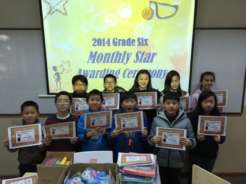 Monthly Stars in Grade Six got their rewards.