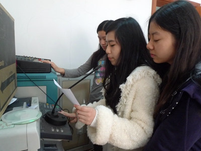 Sound suddenly crackles from the speaker in the classroom, and everyone sits up in anticipation of the Radio Club broadcast, headed by the 8(8)’s homeroom teacher Ms. Gao. The Radio Club selects a few people to go on the air each Friday from 12:40—1 o’ clock.