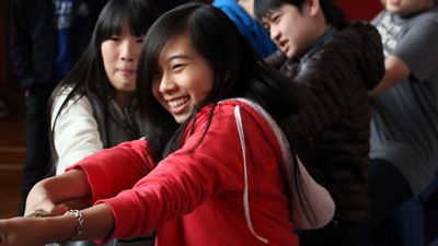 On the afternoon of Wednesday, the ninth graders held a Tug of War competition. Students who participated put in their best efforts and the spectators were so excited about the game, presenting a lively scene at the basketball court. Class one finally won. Congratulations to them!