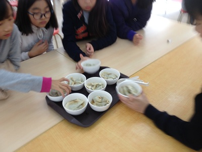 Non-native Chinese speakers in 6th grade made dumplings.