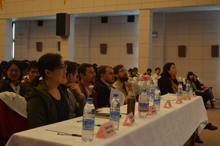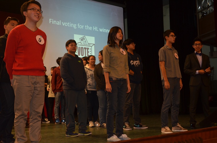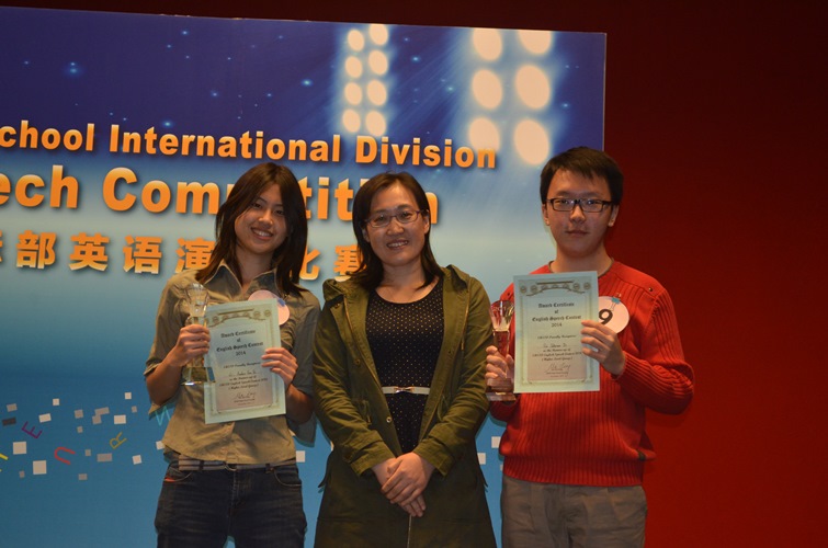 The English Speech Competition for Senior High School was held on Nov 26th. There are 10 speakers in all. They gave a speech they prepared. After that, the top three competitors went to the final. They gave a speech provided on the spot and the student judges and teacher judges voted for them. The First Prize for Higher Level was Jeffery Fu from 11(1) A and First Prize for Standard Level was Sam Zhou from 12(3). Principal Ma and Director Liu presented an award to the winners.