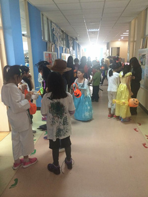 Pudong G5 students celebrated for the coming Halloween on October 28th. During snack time, they went trick or treat for candies in each classroom. All the students went to the gym during P&B class where they had a costume competition. Many fun games were also arranged in the gym and students lined up to participate in the very popular games. The Halloween celebration is regarded as one of the most memorable festivals for students.