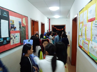 Halloween is here. With its traditional horror and exotic atmosphere, all 8th graders have been looking forward to this festival. This year, the “haunted house” designed by ASB had drawn tons of attention and many students tried every means possible to procure a ticket. A few minutes after the 4th period, there was already a long queue waiting to get into the “haunted house”. You could also see many students who had dressed up in different styles. What kind of costume was the most popular, you ask? The fancier, the better. The more frightening, the happier. There were also many “vampires” and “ghosts” who came into teachers’ offices to “trick or treat” and came out with a handful of candies and a big smile on their faces. How much fun it all was!