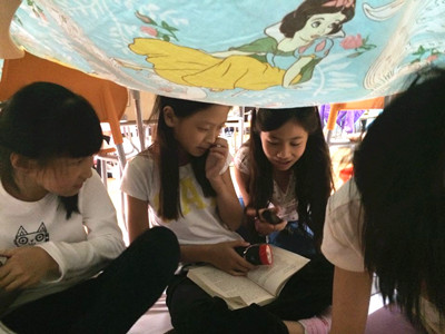 Fifth grade students had a great time reading on October 14th. There was an activity named Reading Camp-Out, which encouraged students to read more. Reading can be fun and it can be done anywhere at any time. Fifth grade students brought bed sheets, pillows, and flashlights. They built their own tents and read in groups. This activity helps students to have more fun while reading, while also creating a relaxing environment for reading.