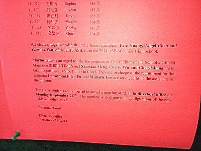 The result of ASB election was listed on a poster in the lobby last Friday at Xianmian Building.The first ASB meeting will be held this week. The new committee will start their jobs soon.