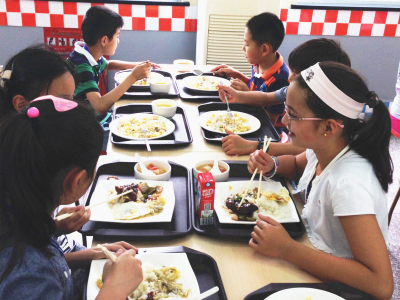 In the new semester, students in Grade 4 start to have lunch by themselves using the lunch card at the cafeteria. They can choose their favorite food and charge the lunch card on each Monday, Wednesday and Friday. Because of this, the Grade 4 students have more lunch choices than they did in Grade 1 through 3. However, the 4th graders have to improve their self-management skills to meet this challenge.