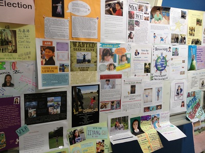 Preparations for the ASB election started this week. Each class has its candidates. Lots of students want to do something for others, so they are standing. They made an A4 poster introducing themselves. The posters are displaying in the lobby.
