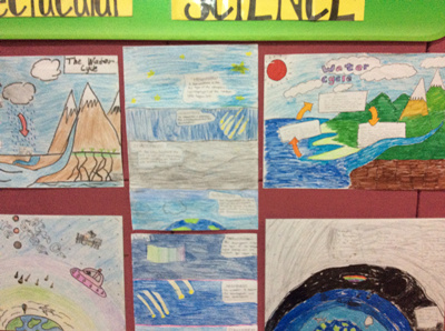 3rd grade students on Pudong Campus drew a water cycle picture with teachers' guidance. With the knowledge and imagination, students were able to represent various aspects of the process, which they had learned about in Science class.