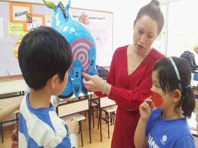 To celebrate Children's Day, Pudong campus had a carnival on May 27th. Each homeroom prepared a game and each student had a stamp list. All the kids participated in games, helping them to receive stamps. 1st grade homeroom had Transport Ping-pong and Fishing; 2nd Grade Hunting Animals and Mini Soccer; 3rd Grade Making 24, Throwing Sandbags and Throwing Balls; 4th Grade prepared Handball and Britain Table Tennis; and 5th Grade teachers organized Hitting the Target and Bowling. Students also played KTV and Hand Shadow in the music and art rooms. For every game the students participated in they could receive one stamp, and if they did an excellent job could even get as many as 3. At the end of carnival, students exchanged their stamps for presents such as lollipops, pencils, and stickers. The best prize, a no-homework coupon, required 80 stamps. We hope that everyone enjoyed the Children’s Day carnival.