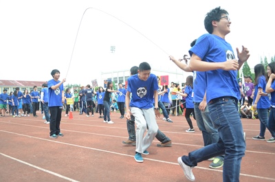 The 2014 SHSID High School Spring Track and Field Sports Meeting was held on the afternoon of Apr 23rd. Before the match began, each class exhibited their opening marches. The topic for Grade 12 of this year was the Fun Games. Each class played a fun game to represent their class spirit. For example, the Quidditch spirit is to never give up, 2 people using only 3 feet shows the power of unity. The eagle catching the chicken demonstrates for us the importance of team work. Everyone enjoyed the game.