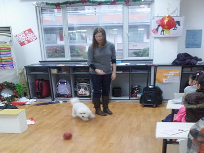 In order to know more about animals and how to communicate with them, Pudong campus Class 2(2) had a special Show and Tell on Friday. Harry brought his dog Button to school. Before Button arrived, students were taught how to communicate and signal to a dog, and how to protect themselves. So when Button arrived in the classroom, everyone was excited but nobody left their seats. Students felt very happy to see a little dog playing in our classroom.