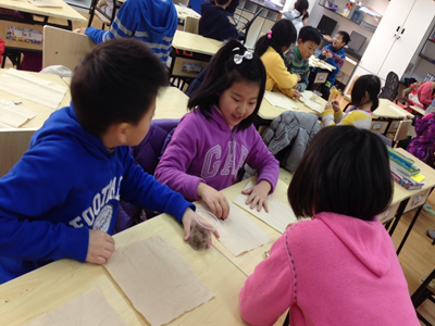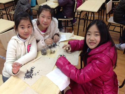 The most interesting part was that we scooped out the “soil”, poured it out onto the tissue paper that the teacher gave us, and tasted it with our hands! Yum!