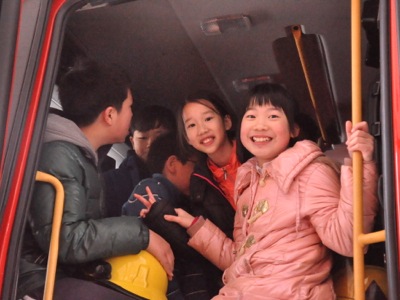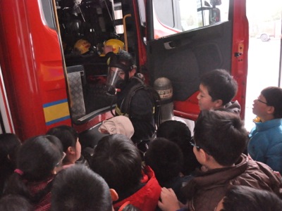 All the fifth graders from Pudong campus got on the school bus to visit the fire station near campus on Feb. 18th. Although they learned a lot about the fire station in P&B classes, they were still excited to have an authentic fireman's helmet in hand. Putting on the helmet, wearing the oxygen bottle, getting on the fire truck, our kids looked like real fire fighters. They not only learned how to protect themselves from a fire, but also about the life of the fire fighters. It was a fun and informative class for them!
