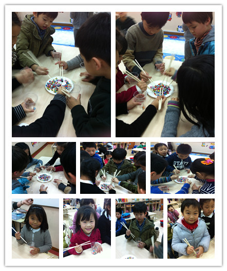 During the Personal Growth Class on February 20th, our first graders held a special basic skill competition. The kids were very excited to participate. The competition was in five parts: using chopsticks to pick up the glass balls, tying shoelaces, taking off and putting on the clothes, cleaning up the cubbies and packing up. Through this competition, Grade One students not only develop their basic skills, but also learn to cooperate with others.