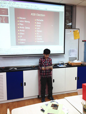 The new election for ASB members this semester was held on Feb. 18th. 15 students from two classes were registered to join the ASB group. Each gave a presentation about themselves, while other students asked them questions. The posters of the new ASB members have been shown in the hallway.