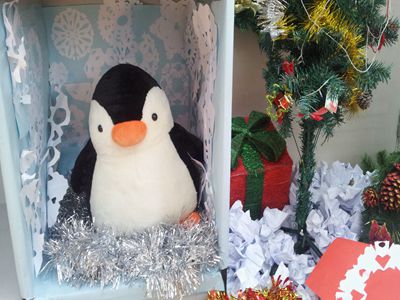 In November’s Reading Race, the 2(2) students made a deal with their teachers. If they could get 1,000 points in the reading race, they would get a class pet. At the end of the reading race, class 2(2) got 1,025 points, so they received a penguin doll as their class pet. The pet was named B.B., and his date of birth is December 1, 2013. Every day there is one student who brings B.B. home, takes care of him, and plays with him, and there were some lucky students who had a Christmas or New Year holiday with B.B. After they got a class pet, the students began behaving much more responsibly than before.