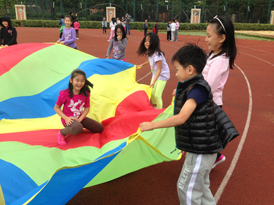 Recently, the third grade classes did something really fun in personal growth class. They could hardly wait as the teachers laid out a huge, colorful parachute on the rocky ground. We played "Cat and Mouse" while somebody hid under the parachute and tried to scamper away from the "Cat," who was on top of it. Somebody threw in several stuffed Angry Birds, and we shook the parachute as forcefully as we could, throwing the Angry Birds high in the air. The kids had a blast running around and playing during this activity. What a splendid afternoon!