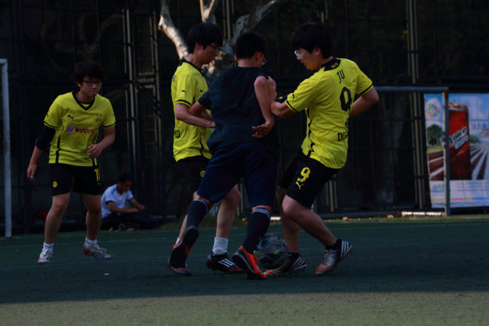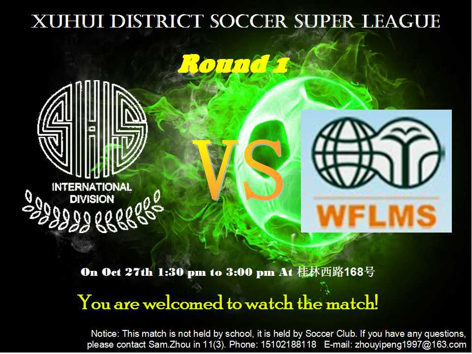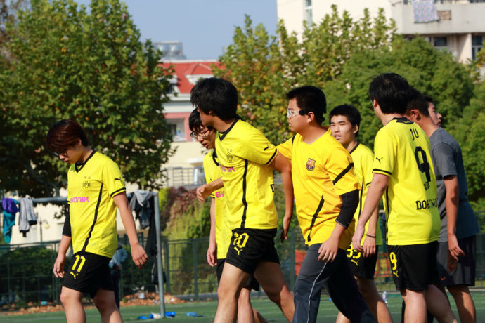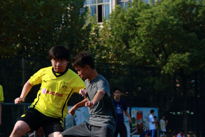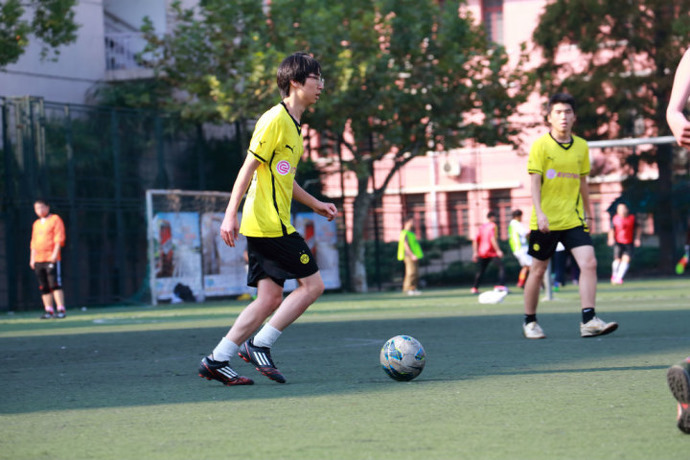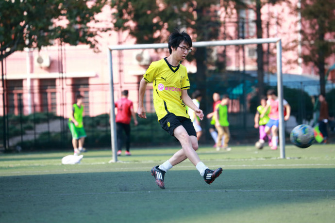 The soccer club provides students with a chance to play soccer. Usually, we have games on Thursdays, but soccer is the kind of sport that requires that many conditions be met to hold games. If it is raining or the field is taken, we can only engage in indoor activities such as badminton. If there are not enough people to have a game, the activity may have to be canceled. At present there are not many students at the school who have expressed an interest in meeting regularly to play soccer. So this year, we have united with the grade 12 soccer club. We have also invited seven other schools’ soccer clubs to join us. Together, we have created the Xuhui District High School Soccer Club Union and Xuhui District Soccer Super League. We have at least one game every month. We have won a lot of games.