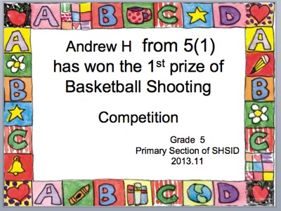 After two consecutive weeks of fierce competition, the results of the basketball shooting competition have finally come out. Good scores occurred one after another, and the best score had to be updated many times. In the boys’ group, first prize went to Andrew H. from 5(1), second prize to Andrew P. from 5(2), and third prize to Jun from 5(2). In the girls’ group, first prize went to Emily from 5(1), second prize to Suji from 5(2), and third prize to Lillian from 5(1) and Mimi from 5(2). Congratulations!