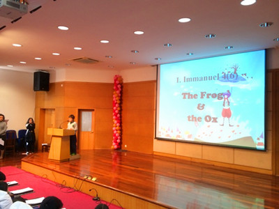 The final for the primary section story-telling competition was held on Nov. 28th in the big auditorium. All our little contestants put forth their greatest effort to win the competition. Some used vivid body language, some offered outstanding audience interaction through Q&A sessions, and others even wore costumes.