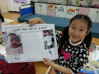 In science class, students made wonderful posters about how they’ve grown. They brought their baby pictures and current pictures and glued them on the posters next to descriptions of differences between the old and new pictures. The students’ pictures are so cute! Everyone is welcome to have a look at our posters in the hallway!